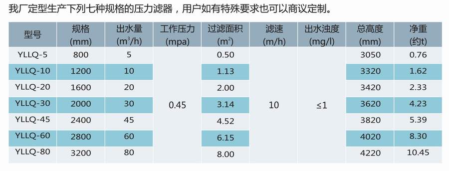 二、當(dāng)原水濁度經(jīng)常在100毫克/升以內(nèi),未經(jīng)混凝沉淀的原水(如用于長期濁度較高的原水時,應(yīng)注意運轉(zhuǎn)周期的縮短或濾速的降低),使用時應(yīng)在濾器前加注混凝劑,這種情況應(yīng)選用雙層濾料濾器。